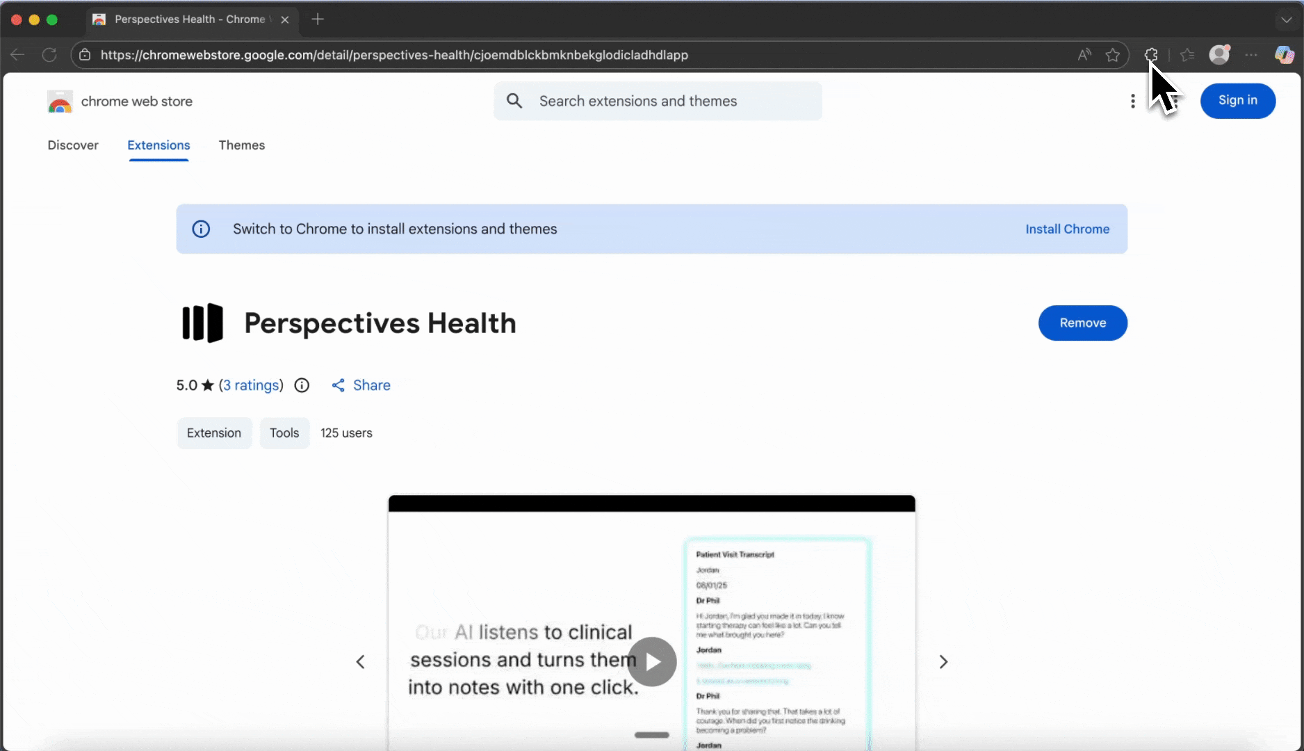 After installation, click the puzzle icon in your browser and pin Perspectives so it stays visible in your toolbar.